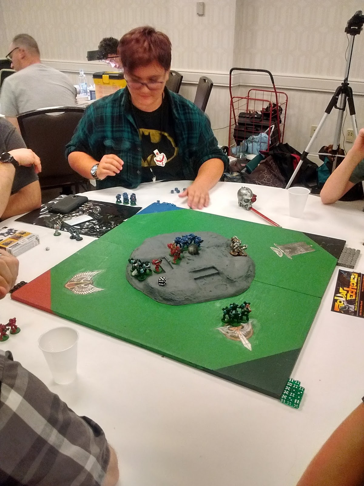 There was a game room open for the duration of the con, of course, and to my surprise, my daughter actually got really into playing Warhammer 40k. They did a scenario called “King of the Hill”, and she was really into it. Heaven help me; my daughter might be getting into minis. If only it wasn’t Games Workshop…